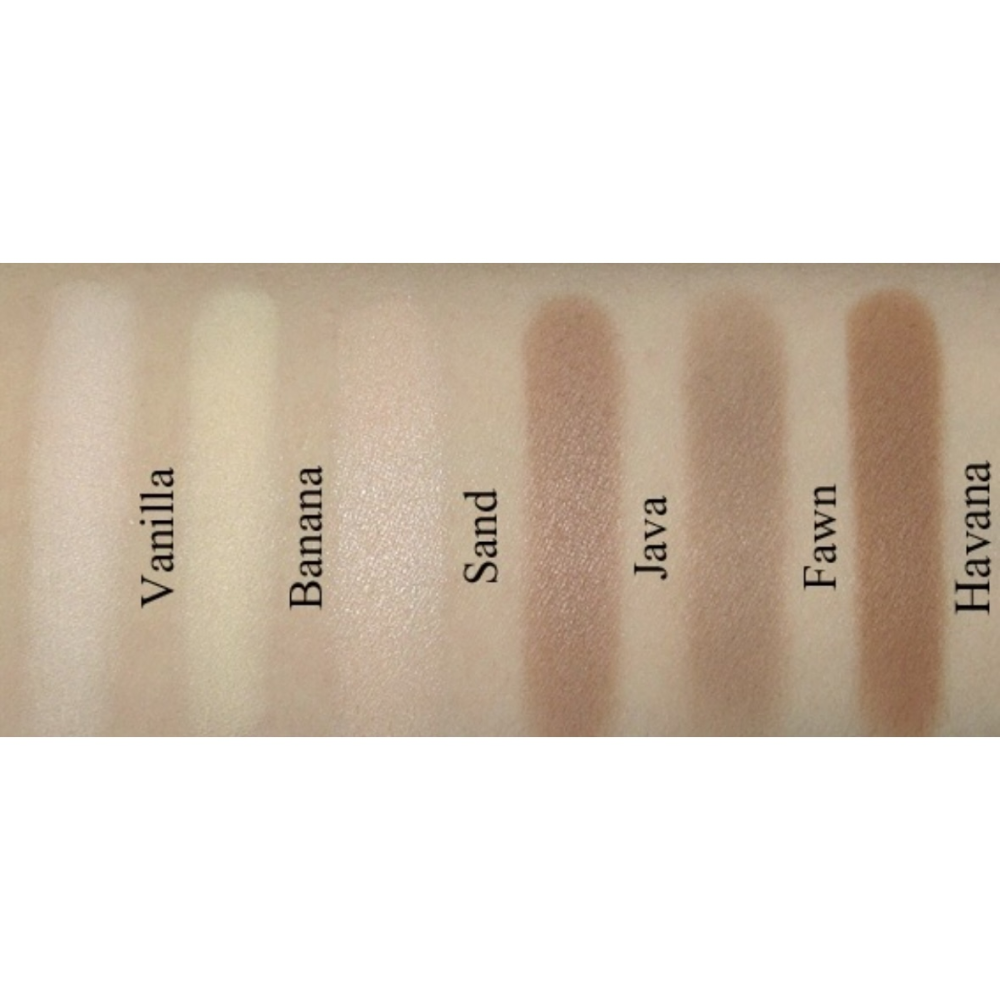 Відтінки у палетці: Havana, Banana, Fawn, Vanilla, Java, Sand.