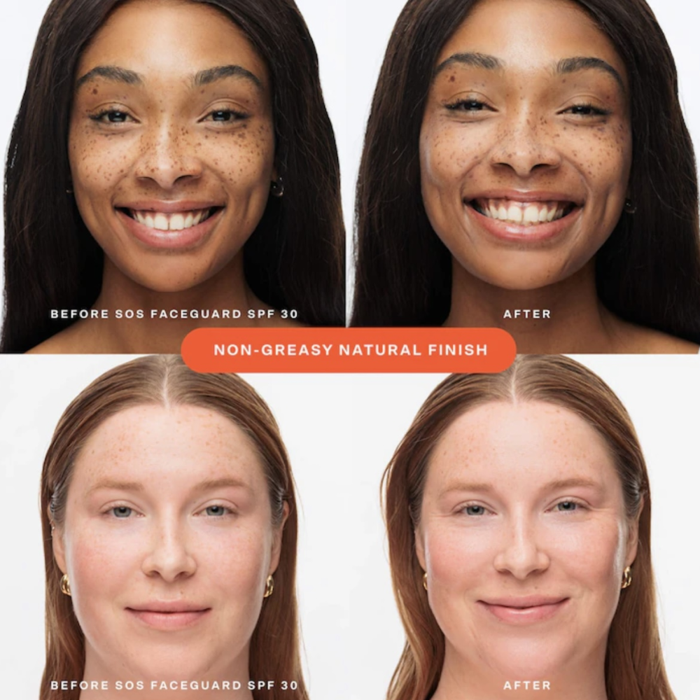 Со взбитой кремовой текстурой, больше напоминающей легкий увлажняющий крем, этот неакнегенный SPF-крем увлажняет, успокаивает и придает коже свежий вид. Разработанный, чтобы хорошо сочетаться с макияжем, он не скатывается при наслоении и имеет бежевый оттенок, который при нанесении подстраивается под любой тон кожи и дарит естественный финиш. SOS SPF не содержит спирта, масла и ароматизаторов, протестированный офтальмологами, некомедогенный и награжденный Национальной ассоциацией экземы, Национального общества розацеа и Национального фонда псориаза, клинически тестирующих на чувствительность, раздражение и токсичность.