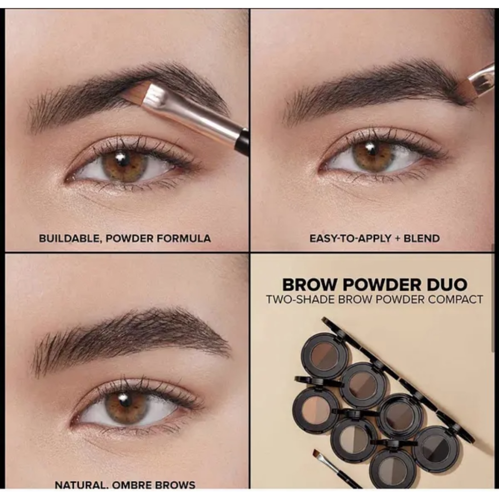 Повнорозмірні тіні для брів Brow Powder Duo - компактна пудра для брів двох відтінків, створює природний і доглянутий вигляд. Легка, прозора і середня формула покриття була розроблена так, щоб не розтікатися, випускається з двома відтінками в кожній упаковці, щоб забезпечити ідеальний колір брів.